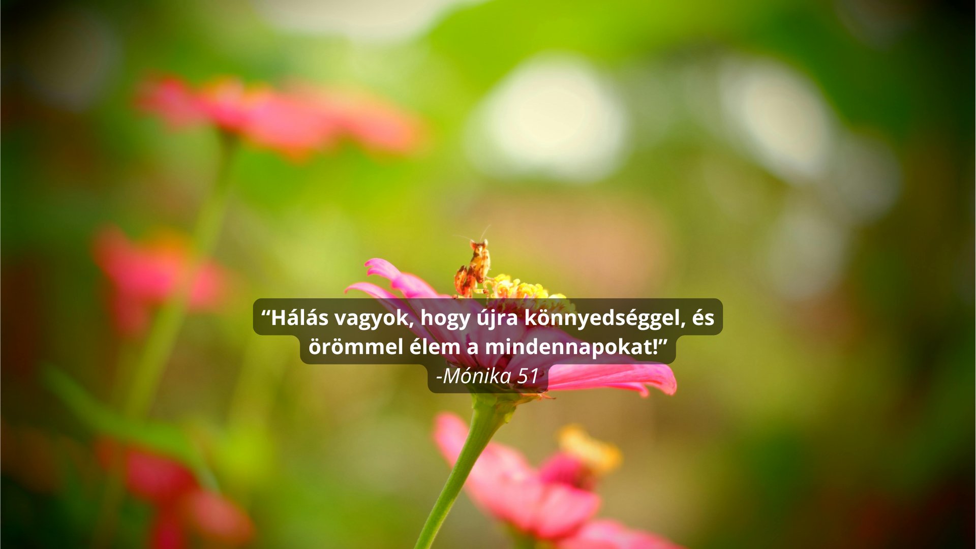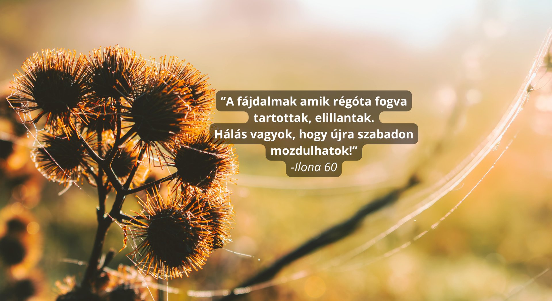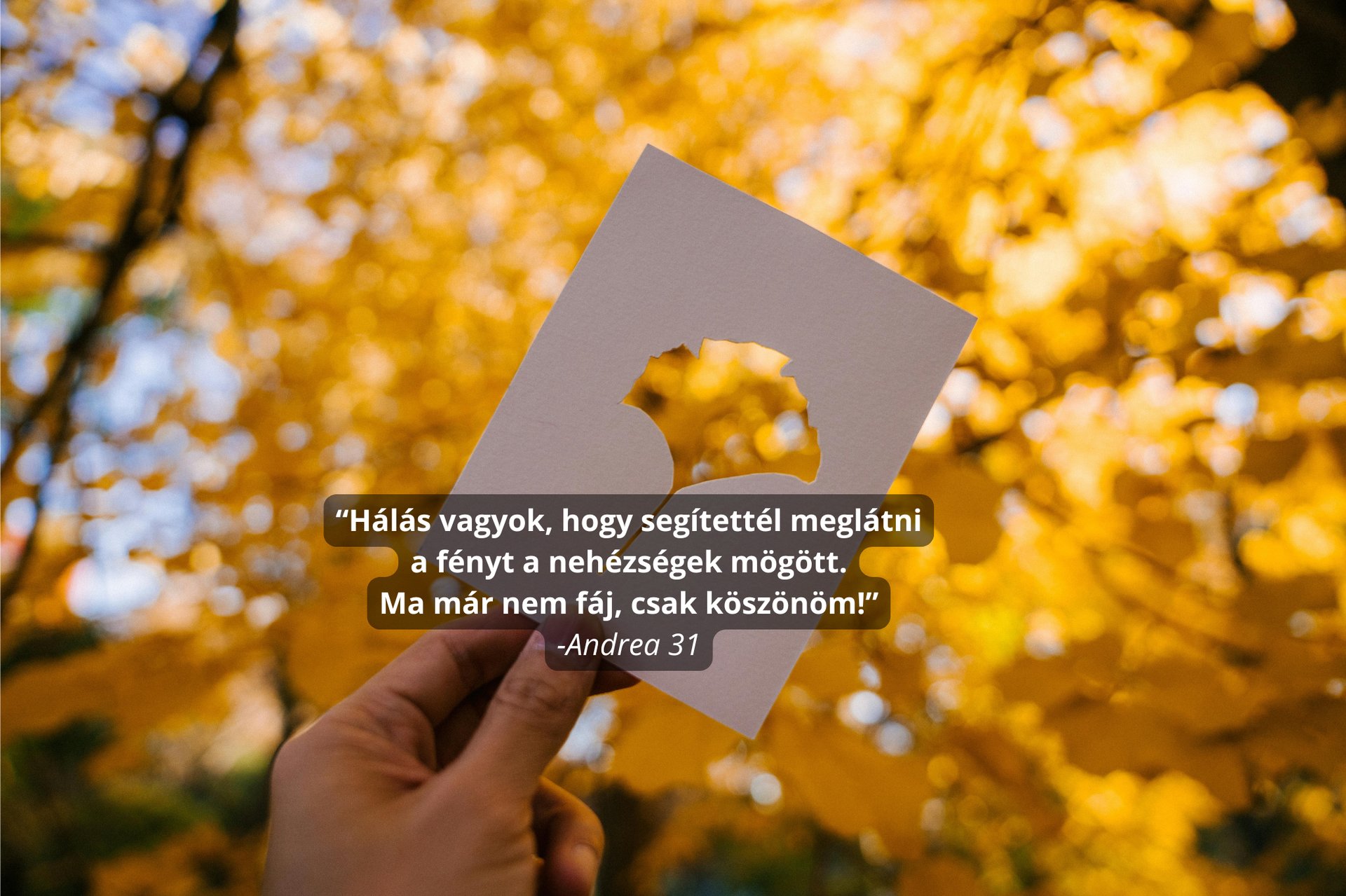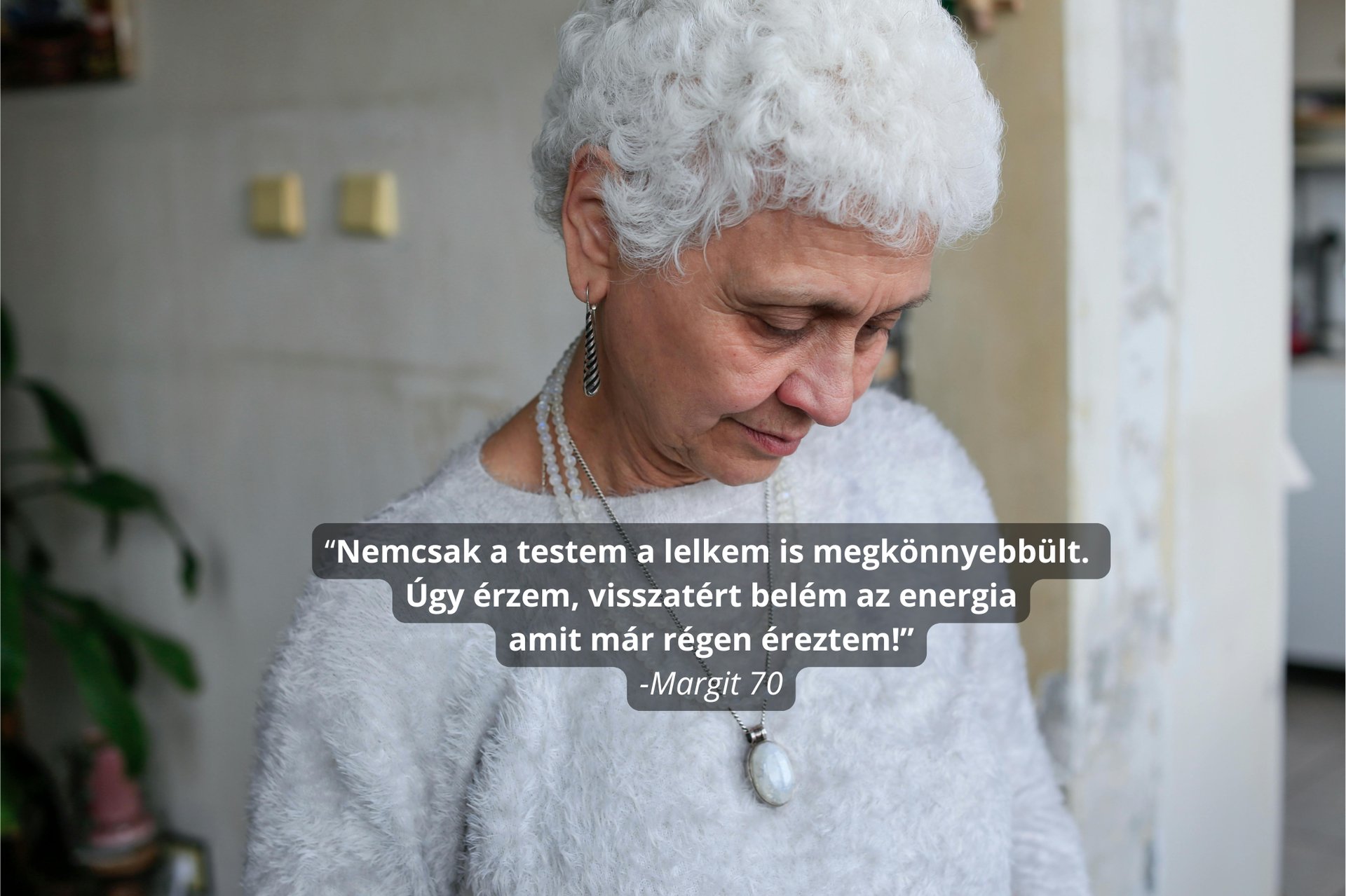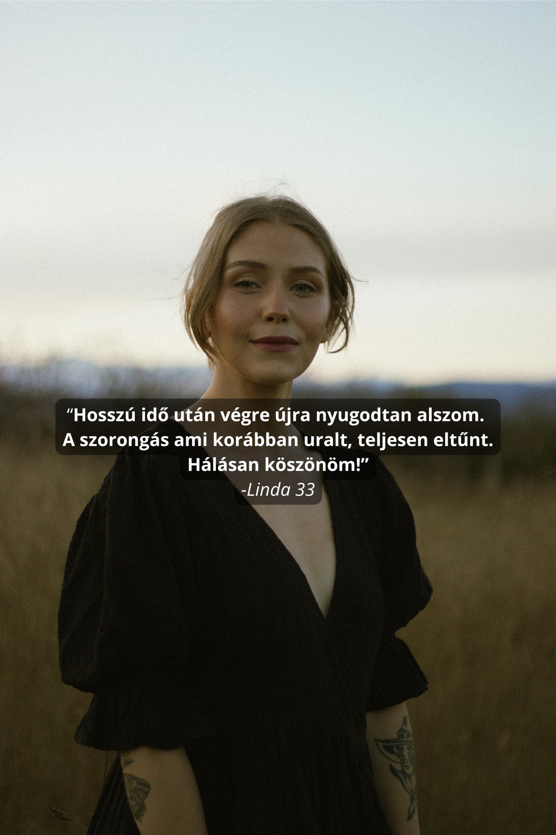 Sok évig éltem állandó feszültségben és pánik rohamaim is voltak. Úgy éreztem bármikor összeomolhatok. A közös munkánk során nemcsak szerekben kaptam támogatást, hanem megértést, figyelmet és valódi jelenlétet. Már néhány hét után sokkal könnyebben lélegeztem, nem szorít a mellkasom, újra tudok mosolyogni. Hálás vagyok, hogy visszakaptam Önmagam.